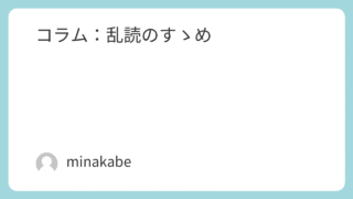 コラム コラム:乱読のすゝめ 皆さまこんにちは。水壁でございます。今回はコラムになります。普段の書評とはまた違った話をするので、よろしければ最後までお付き合いいただけますと幸いです。乱読のすゝめ今は職業や金銭面の都合で、このブログで紹介するような技術書や専門書を読んでい... 2025.10.04 コラム
